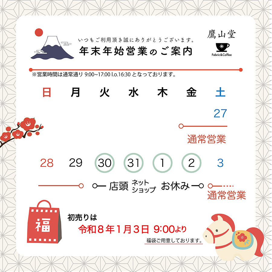 本年も鷹山堂をご愛顧いただきまして誠にありがとうございます。